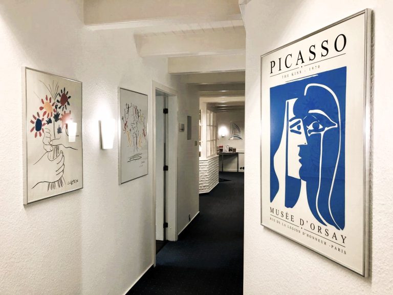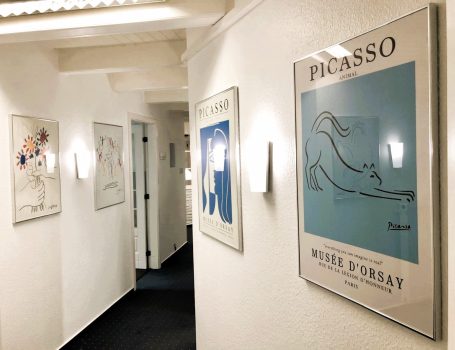 Unsere Praxisräume sind vollständig mit wunderschönen Galeriedrucken von Highlights der modernen Kunst versehen. Es erwarten Sie bei Ihrem Besuch bei uns ikonische Bilder von Pablo Picasso, Henri Matisse, Andy Warhol und David Hockney. Selbst auf den Fußleisten verstecken sich bei genauerem Hinsehen die legendären Ratten des Künstlers Banksy.